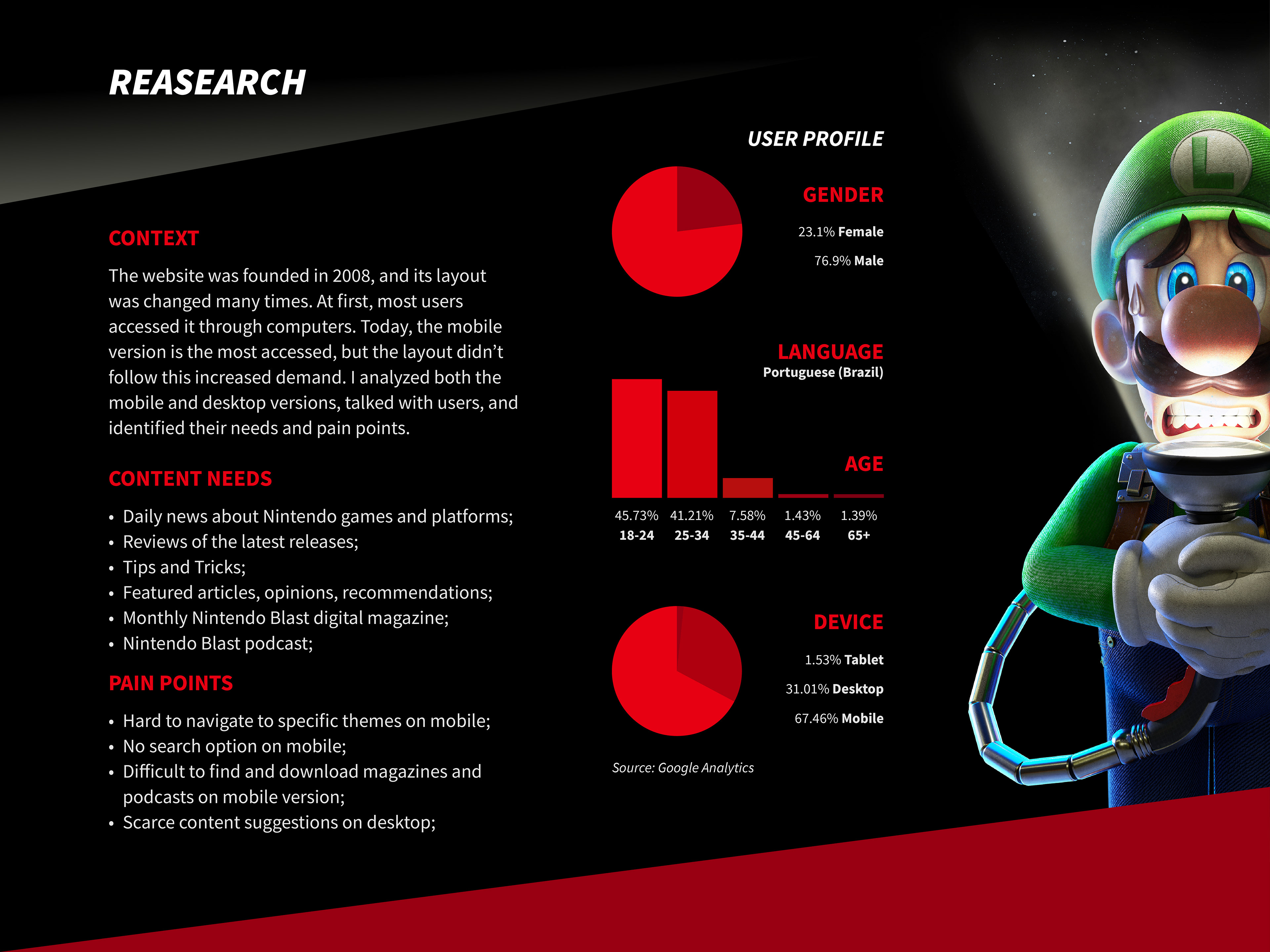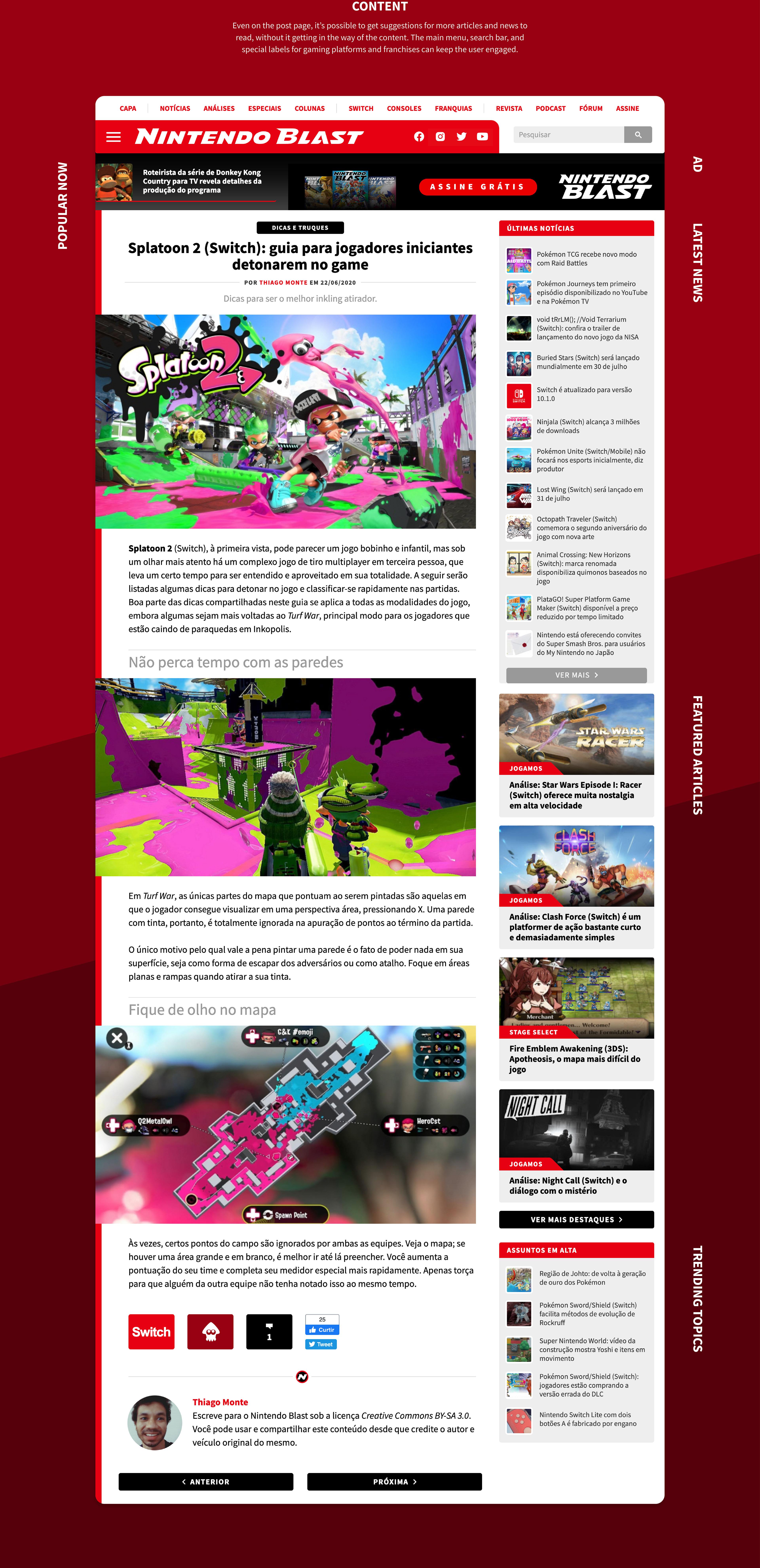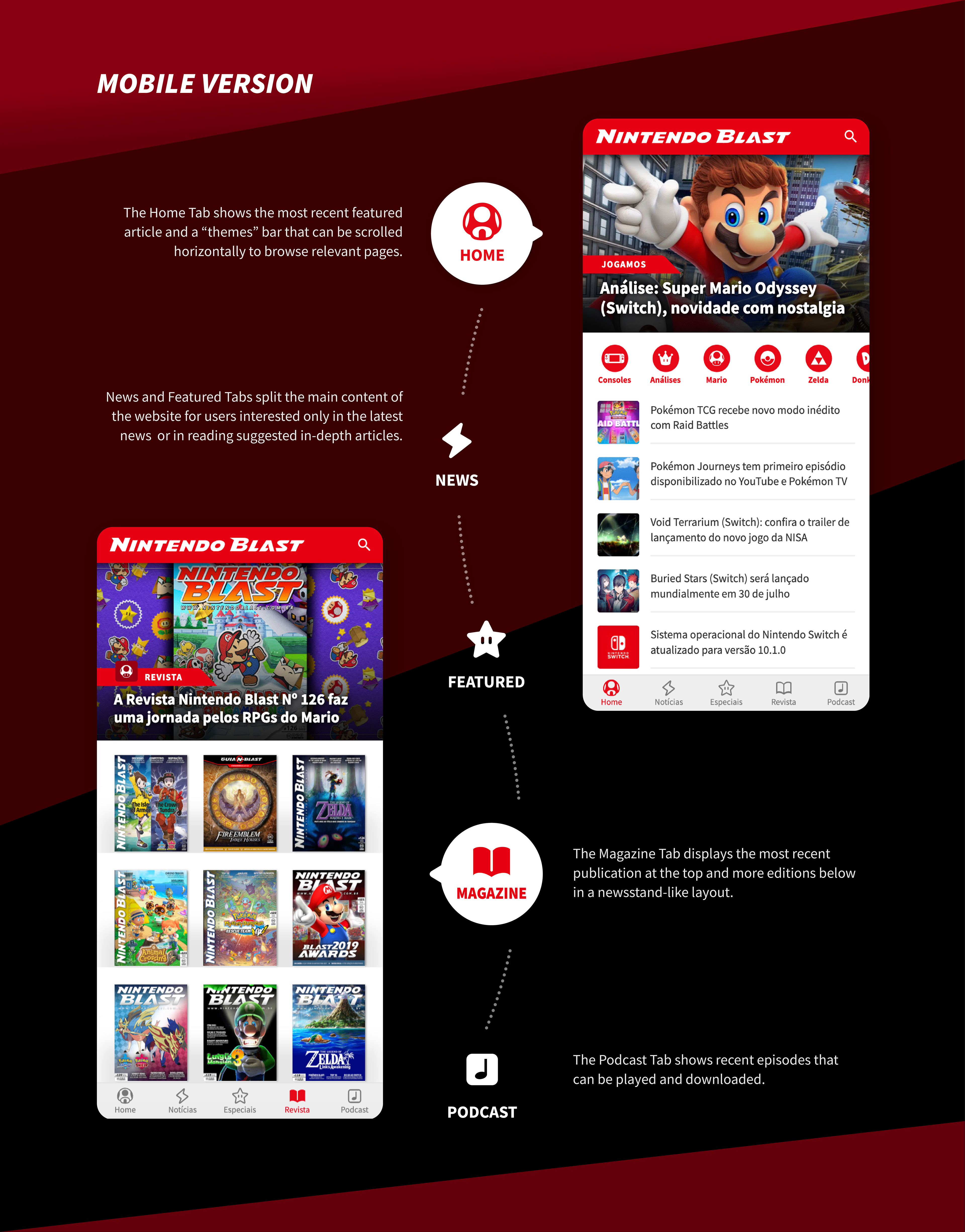 Nintendo Blast is a Brazilian gaming website focused on Nintendo products with news, articles, digital magazines and podcasts . My goal was to design the visual identity and UI/UX of the mobile and desktop website.